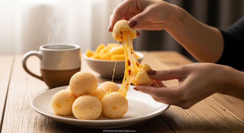 - Ajuste da Consistência da Massa: A quantidade de polvilho pode variar ligeiramente dependendo da marca e da umidade dos ovos. Se a massa estiver muito pegajosa e difícil de modelar, unte as mãos com um pouco de óleo. Se estiver seca e quebradiça, adicione um fio de leite morno, aos poucos, até que fique macia e elástica.