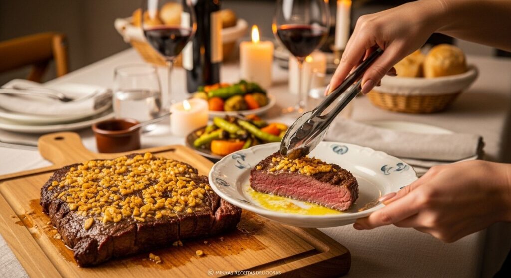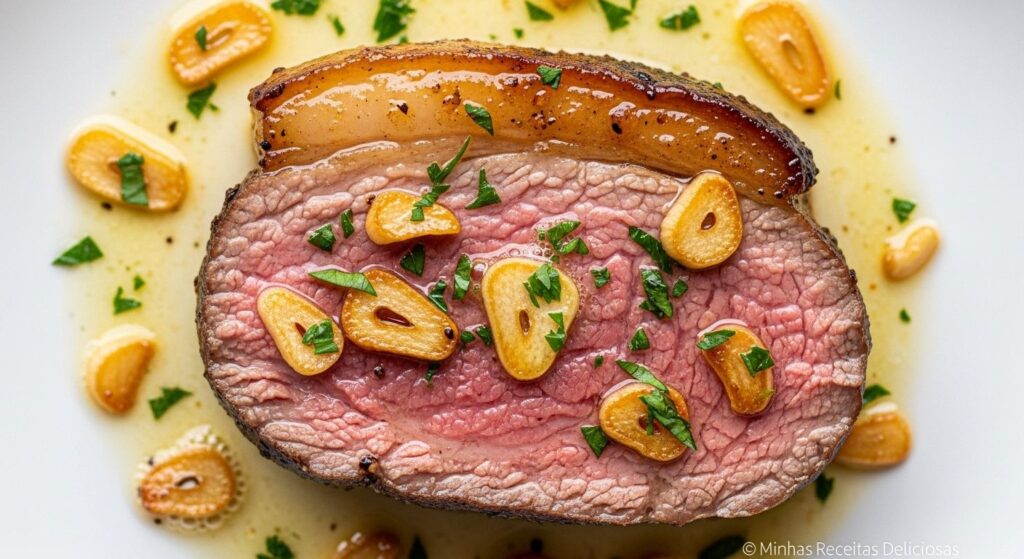 A combinação da Picanha na Manteiga com Alho Dourado cria uma crosta irresistível e um interior macio e aromático. É a estrela que faltava no seu repertório culinário.